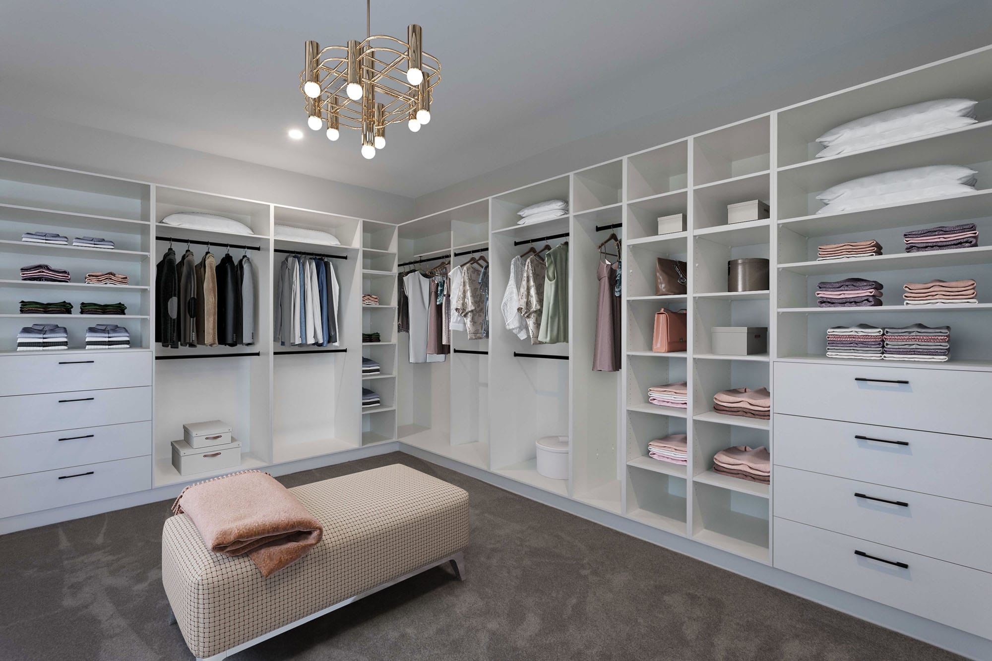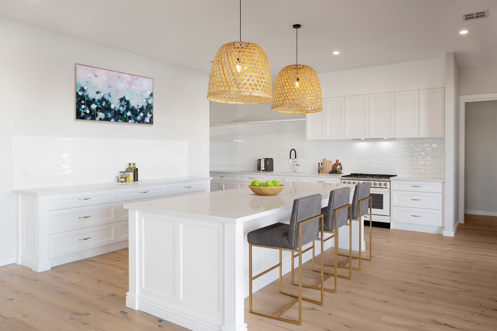 This project featured a grand ‘Carrie Bradshaw’ walk in robe, high end custom cabinetry and stone, open living & dining filled with natural light, a moody theatre room for the whole family and much more!