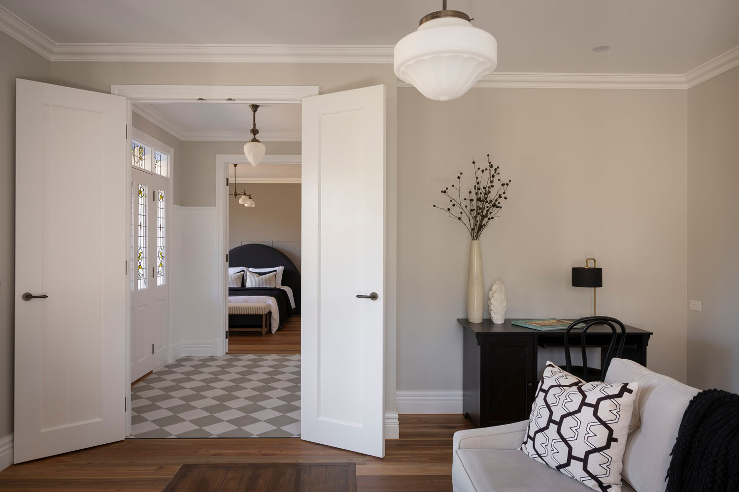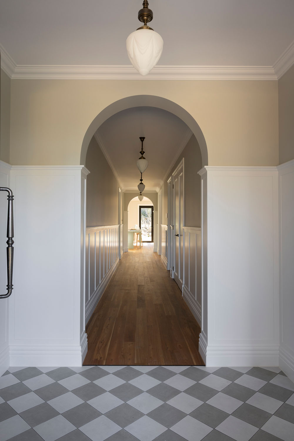 Casa Laurel is an elegant provincial-style residence in Trentham, thoughtfully crafted to honour the timeless charm of Federation architecture. Step inside to discover exquisite craftsmanship at every turn—arched entryways, refined wall panelling, and striking harlequin tiling create a sense of enduring beauty and sophistication.