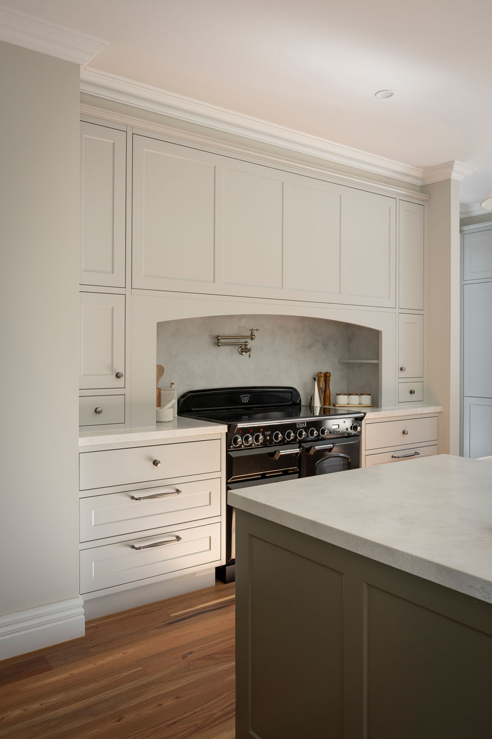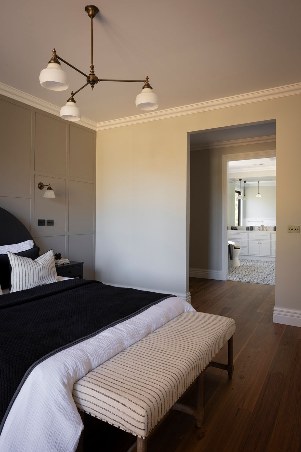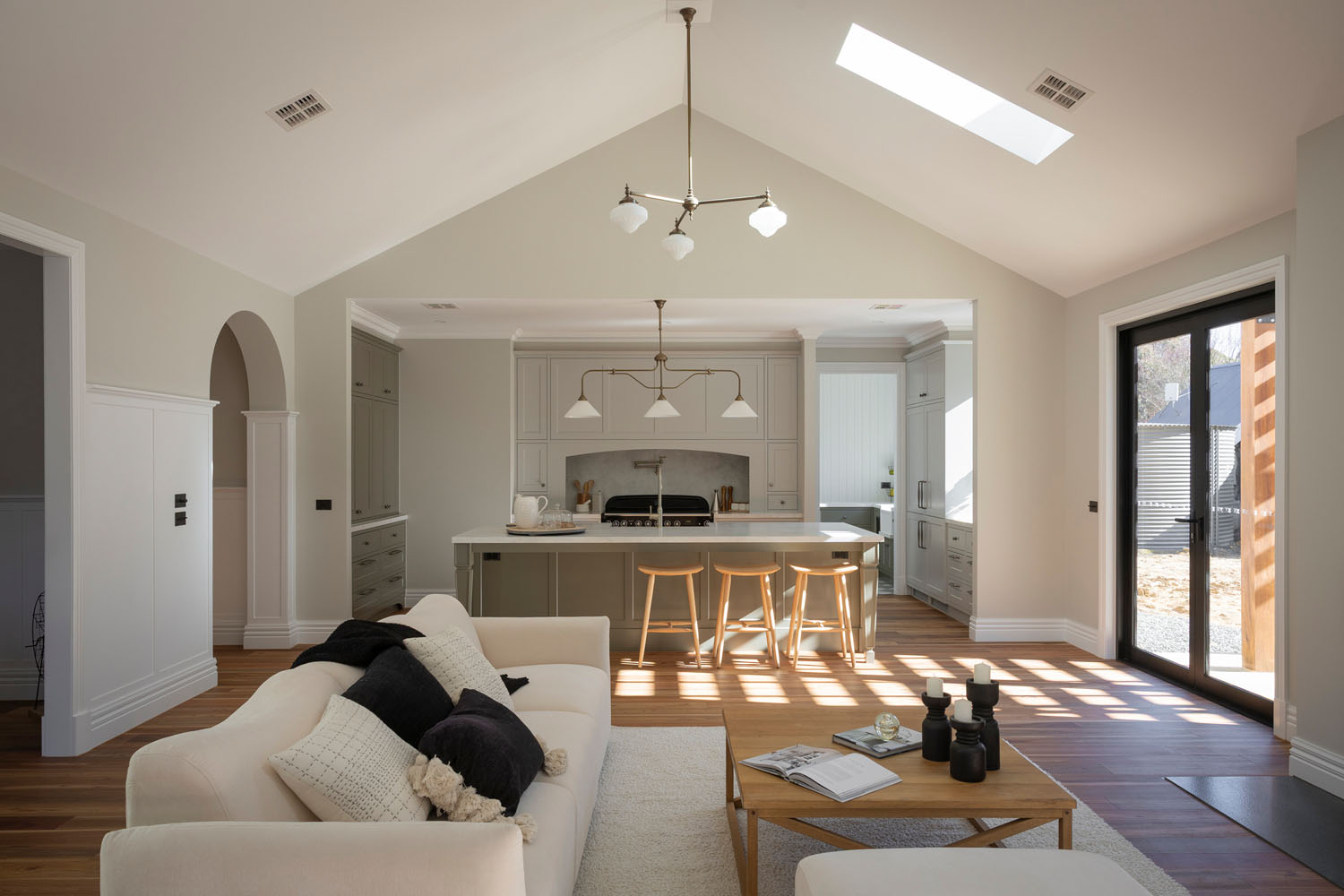 At the heart of the home, a stunning kitchen features face-framed shaker cabinetry, a bespoke alcove rangehood, and luxurious Aoraki Lago stone, establishing Casa Laurel as both welcoming and refined. Every wet area blends classic grace with modern finishes, while intricate detailing throughout the residence unites comfort and elegance. Embraced by Trentham’s natural beauty, Casa Laurel perfectly embodies luxury country living.