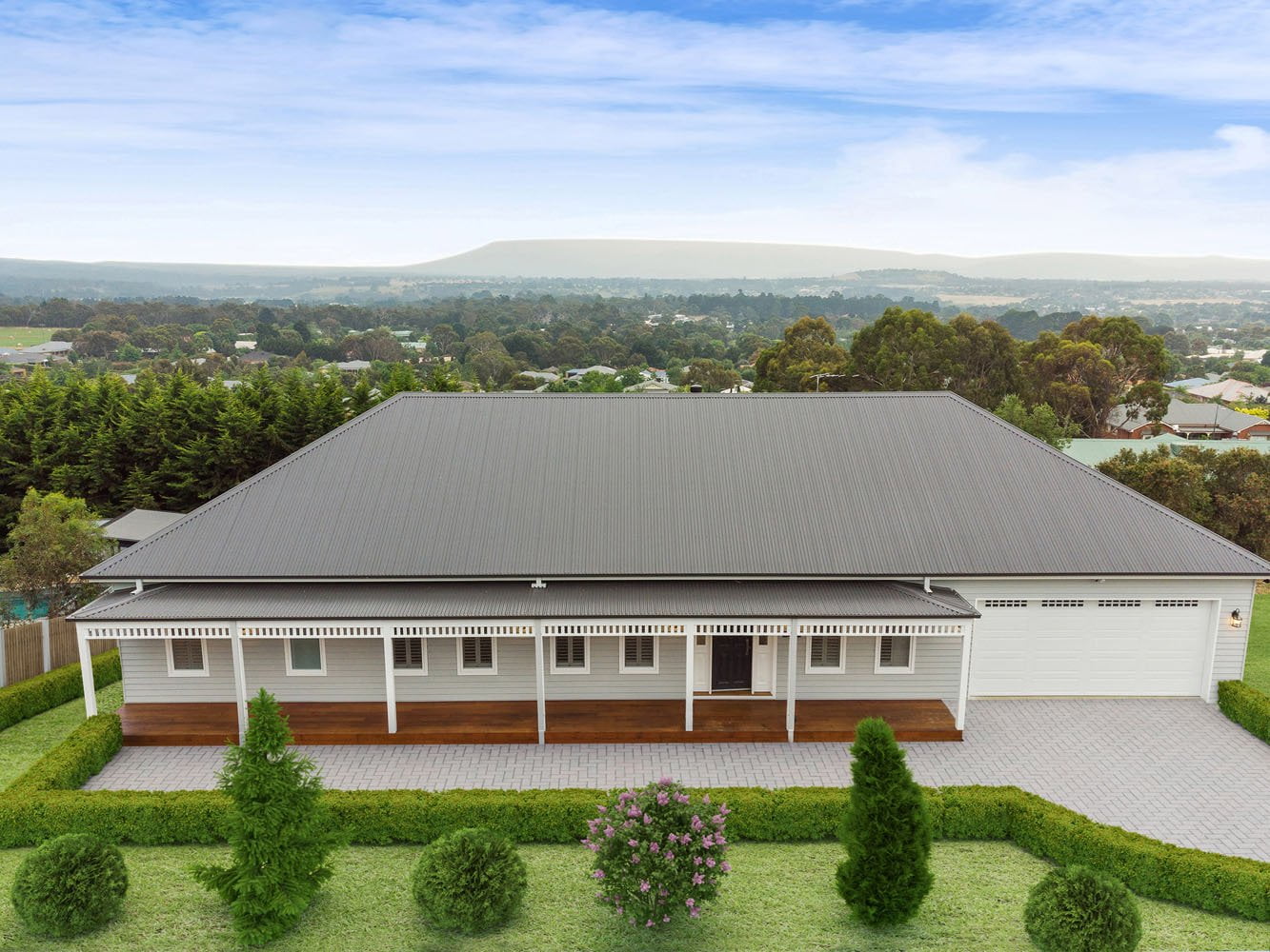 The clients of Grange Court had a goal to keep their floorplan to a necessary, usable size whilst focusing on high-quality materials, fittings and fixtures. Maximising the views of Mount Macedon was on the top of the priority list for this beautiful Hamptons style home.