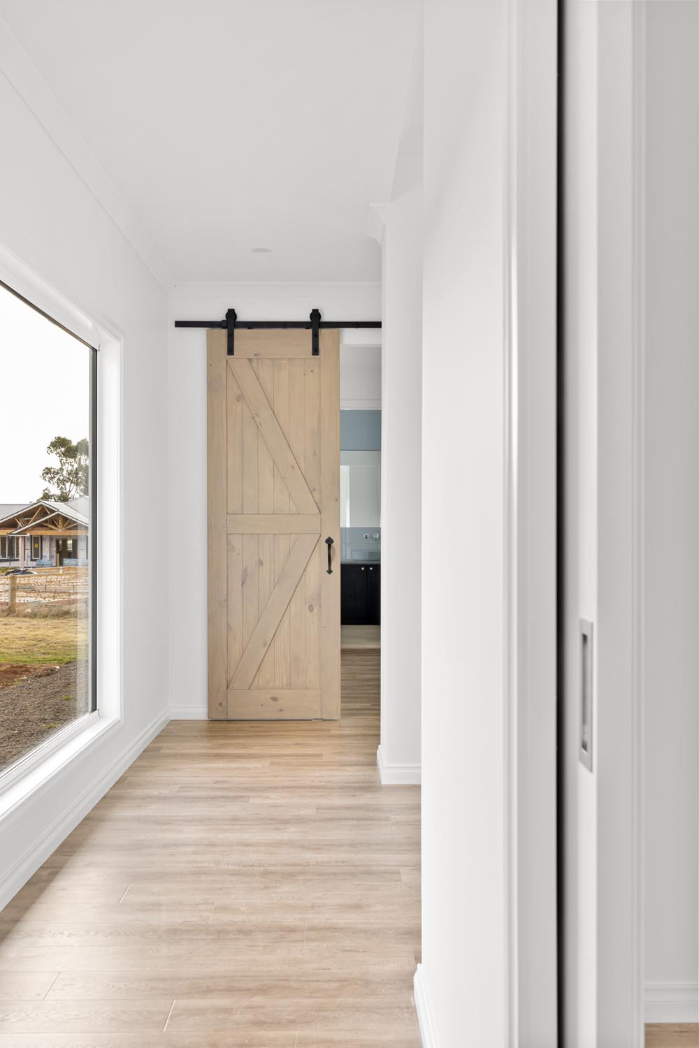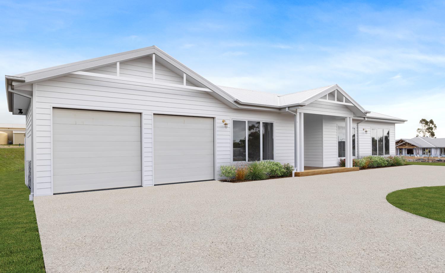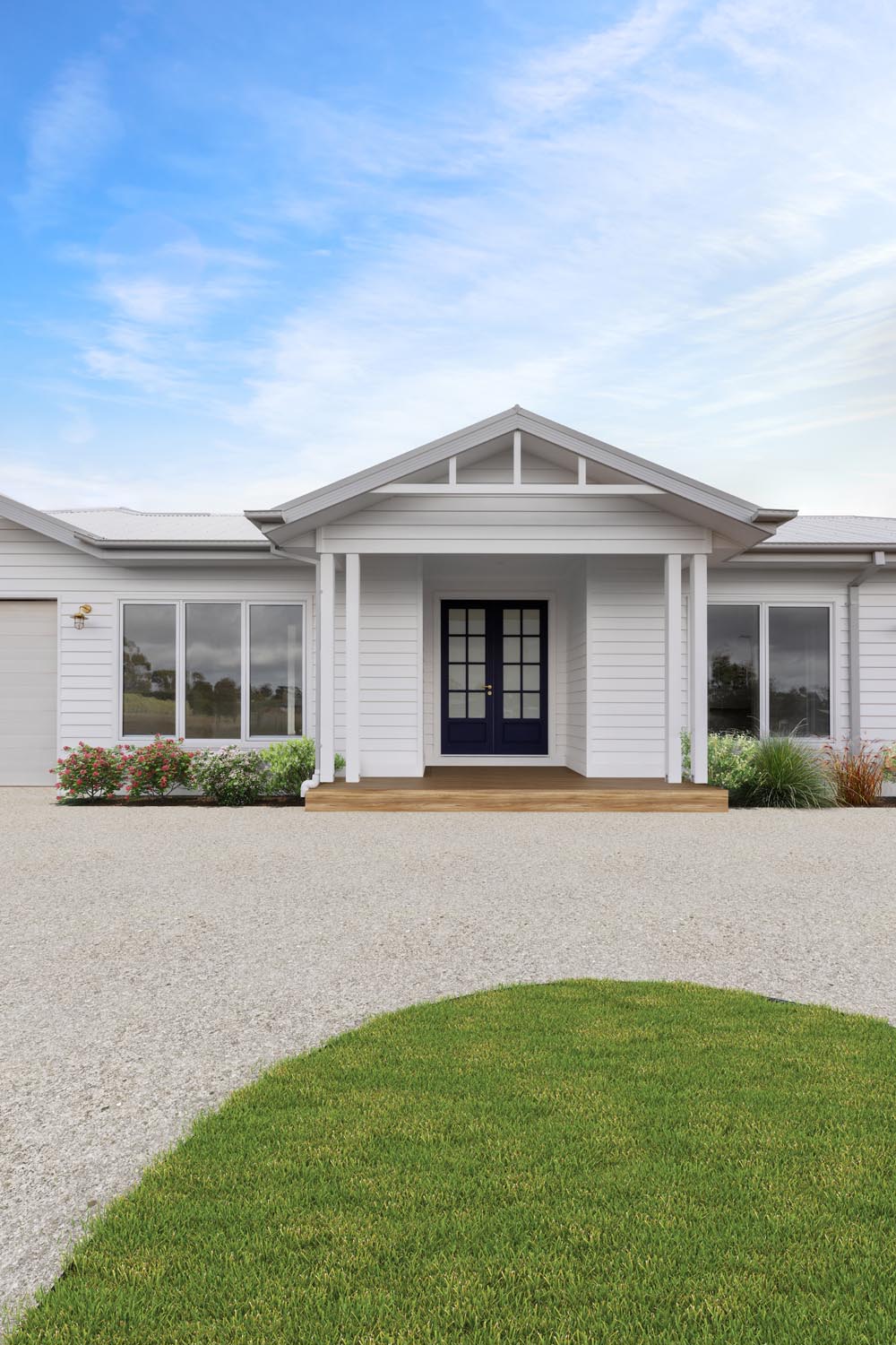 The exterior of the home is Hamptons inspired with crisp weatherboards and decorative gables. The L-shape design allows for 2 separate ‘wings’ to the home, providing comfort and privacy for both parents and children.