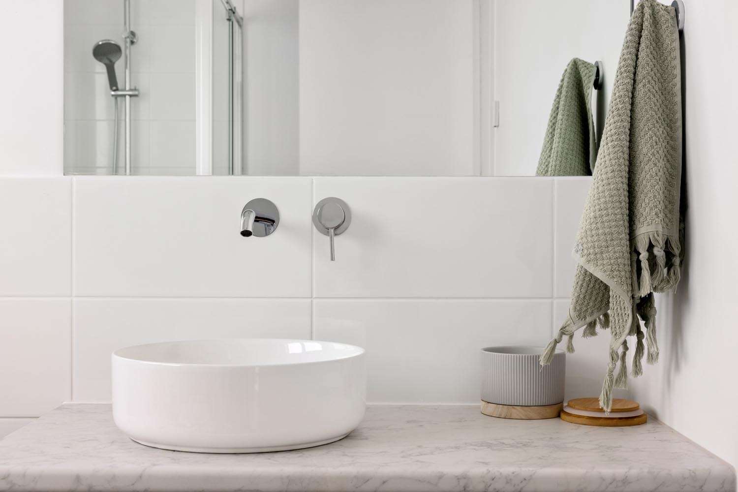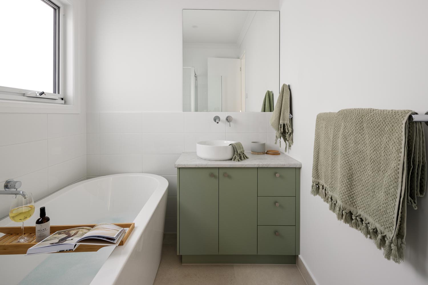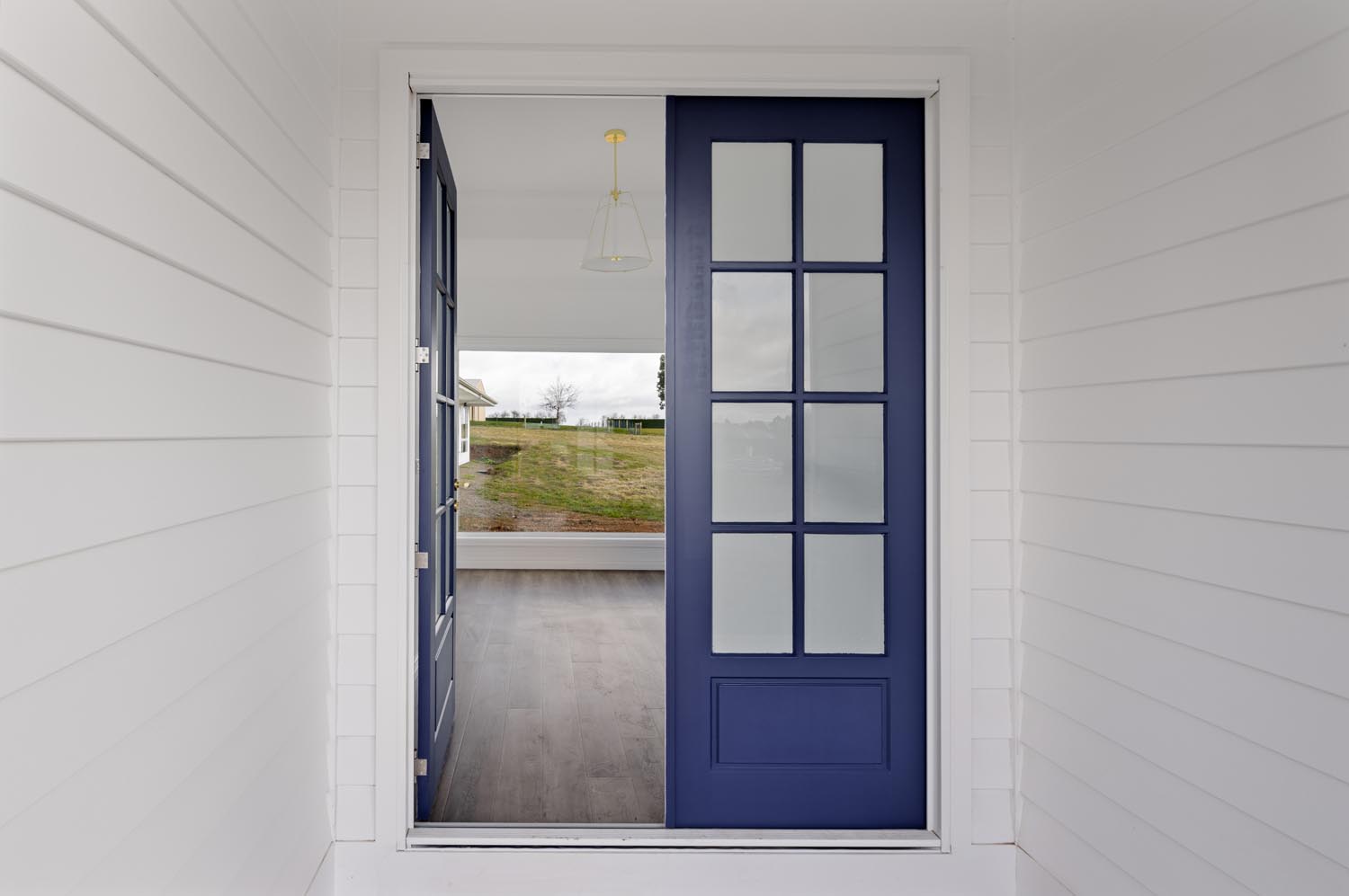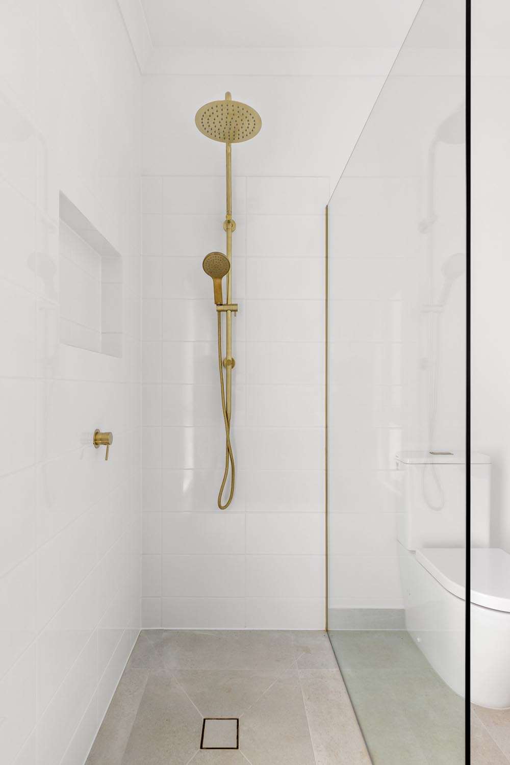 Kelly cleverly made the features of her home pop by creating a bright and neutral base pallet. In this light-filled home, the navy blue cabinetry and gold tapware becomes the hero against white walls and bleached timer flooring. Large windows capture the sunlight all day long and provide views to the yard from any room.