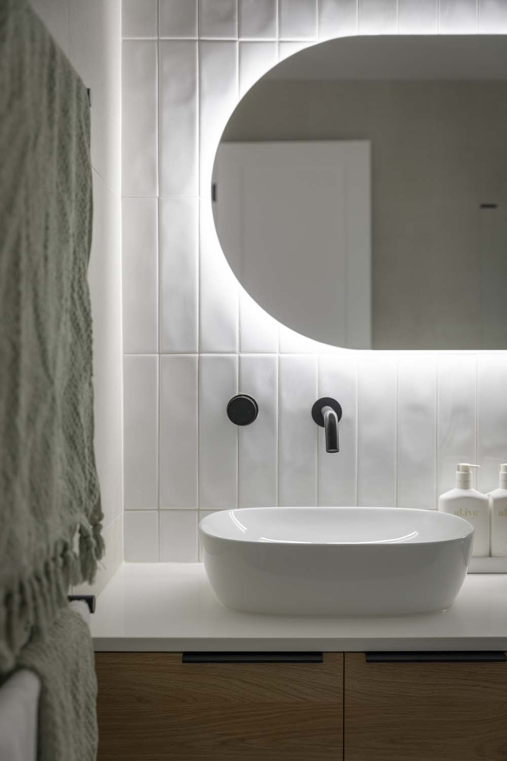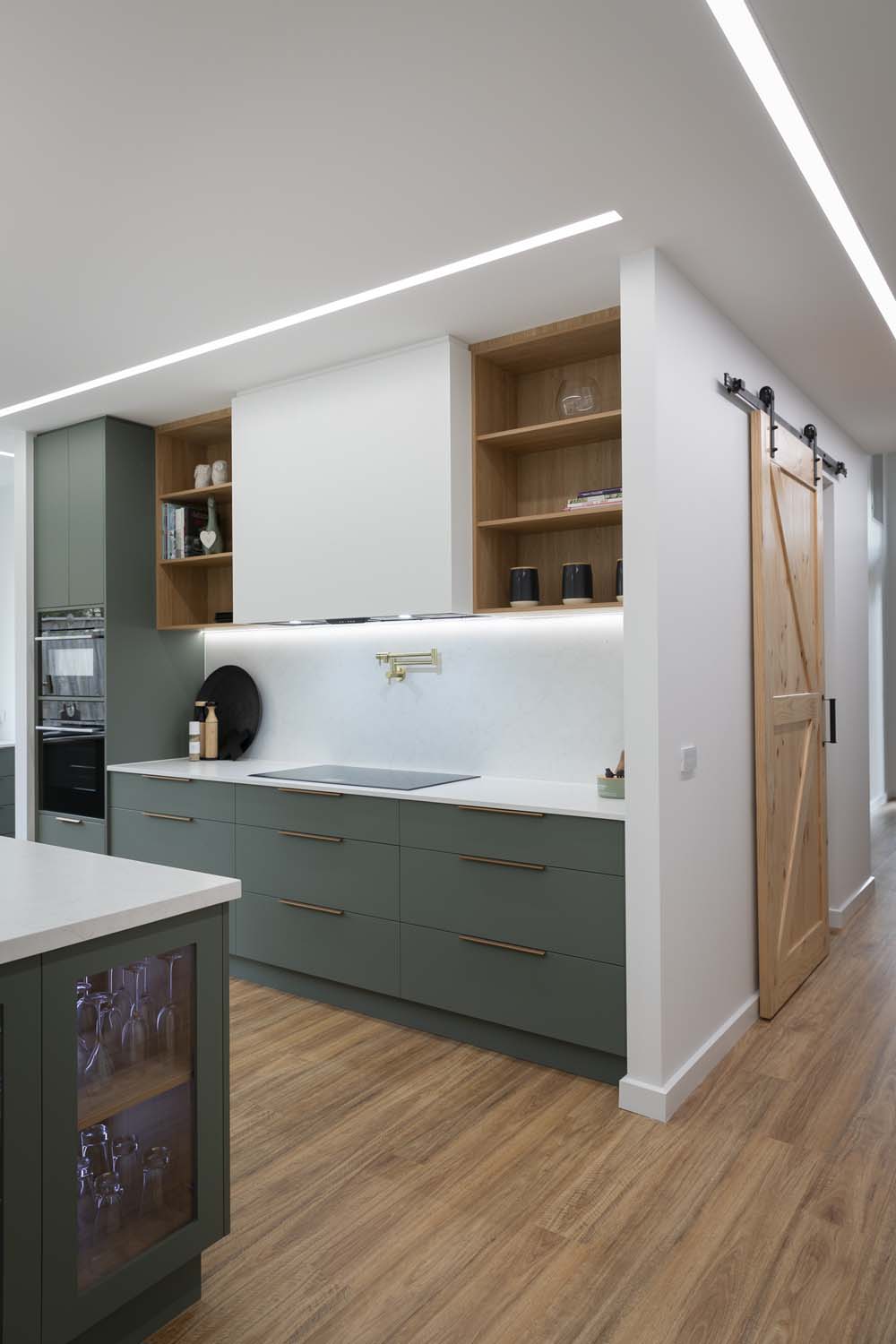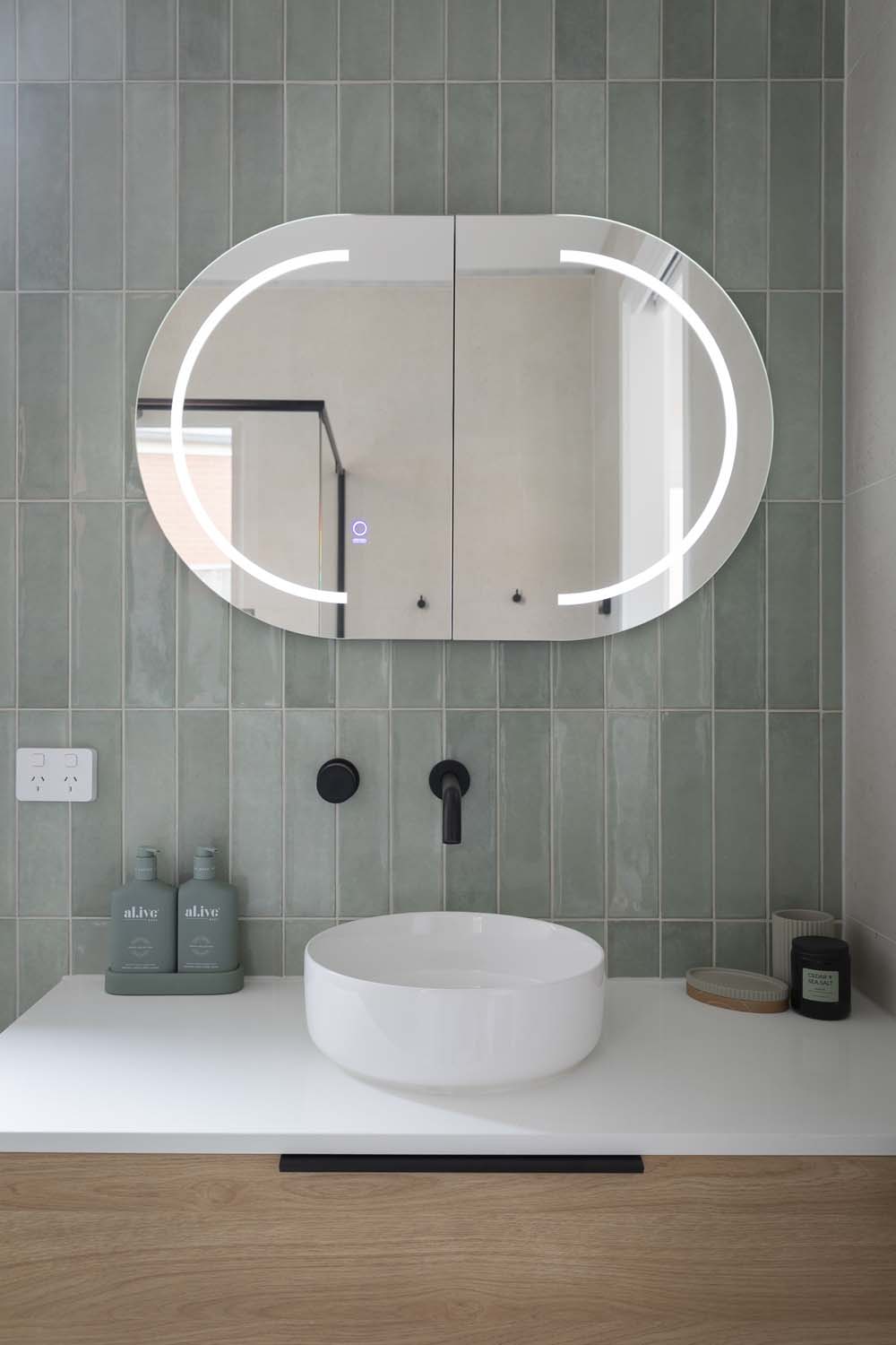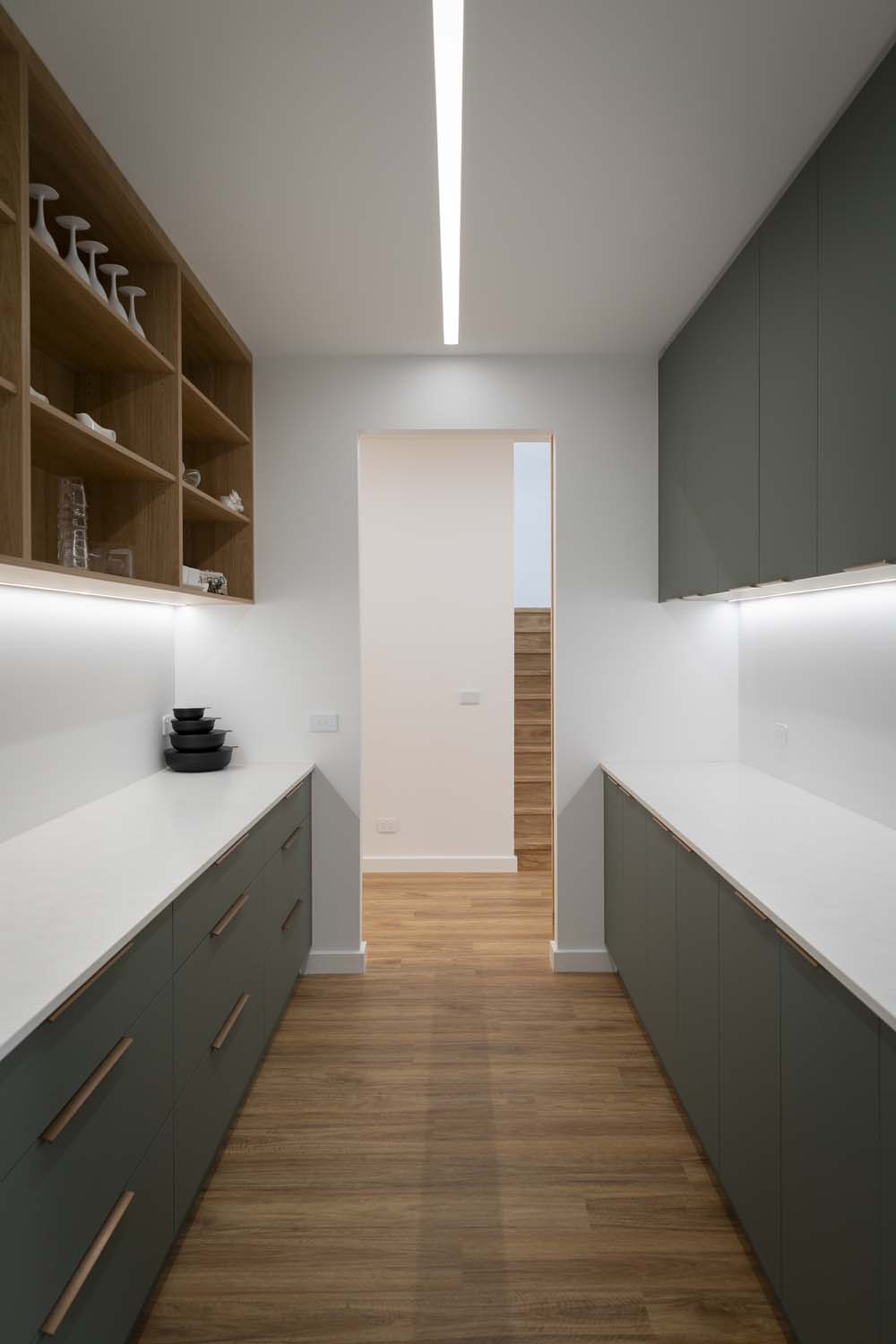 Material selections were made with longevity and elegance in mind. Neutral tones dominate the palette, ensuring the spaces remain fresh and contemporary for years to come, while the kitchen features a striking sage green—a nod to current trends and a touch of personality unique to this build. The master suite is positioned at the rear, overlooking a serene reserve, and offers seamless integration between bedroom and ensuite for privacy and practicality. The dedicated home office, complete with a temperature-controlled equipment storeroom, reflects a commitment to both productivity and aesthetic cohesion, making this residence a showcase of thoughtful, enduring design.